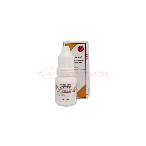 Flamar Eye Drop adalah obat tetes mata yang mengandung bahan aktif ketorolac tromethamine. Obat ini digunakan untuk mengurangi peradangan dan nyeri pada mata setelah operasi katarak atau tindakan bedah mata lainnya.